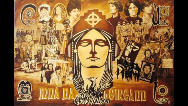 El 'Mural de la Mujer ' del artista deBelfast Danny Devenny - refleja, con gran detalle, los papeles innumerables que las mujeres republicanas han desempeñado a lo largo de la historia de Irlanda :desde las sufragistas a Cumann na mBan , las presas, las visitantes de la prisión, las voluntarias, las manifestantes, y amas de casa.