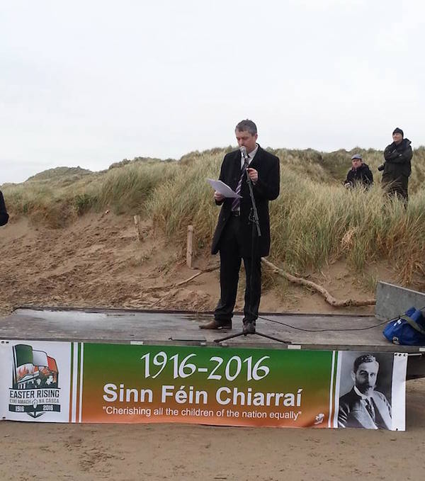 La gente escuchó a Martin Ferris - quien fue encarcelado en 1984 diez años después de haber sido capturado en la costa de Kerry tratando de introducir armas y otros equipos para el Ejército Republicano Irlandés - decir que la visión de Roger Casement y sus compañeros " No sólo estaba a punto de liberarnos de la dominación británica - se trataba de liberarnos de la pobreza y de las garras de las élites que gobernaron por sus propios intereses egoístas".